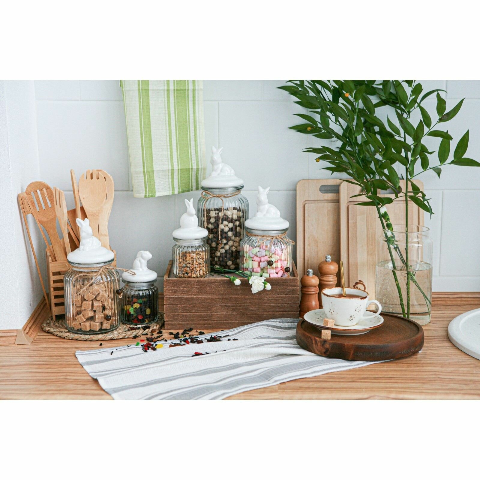 Банка для сыпучих продуктов с керамической крышкой, сахарница стеклянная Доляна «Зайка» 950 мл