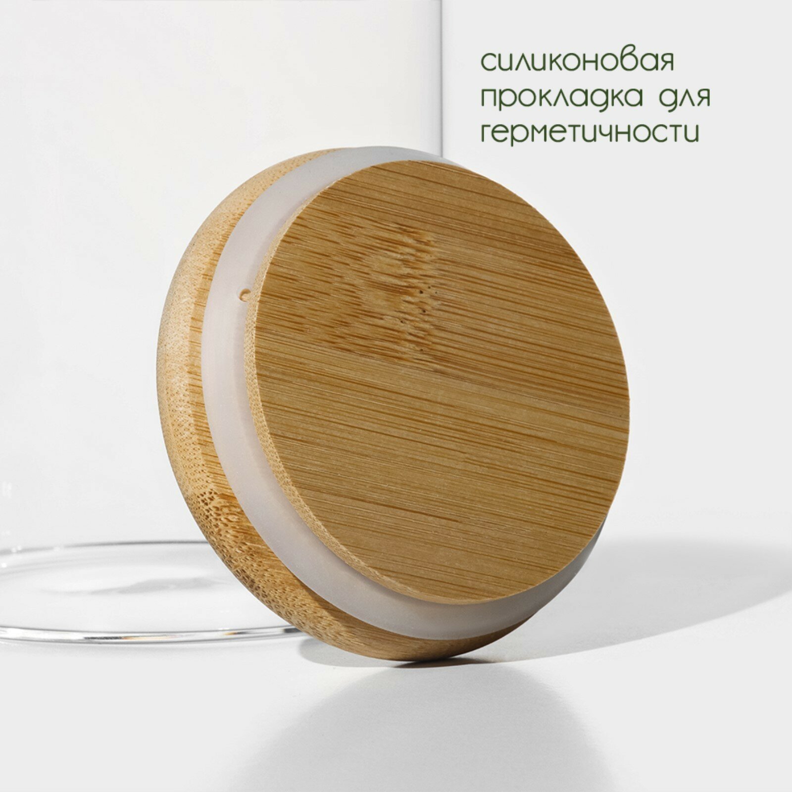 Банка для сыпучих продуктов BellaTenero «Эко», 950 мл, 10×15.5 см, с бамбуковой крышкой, стекло, прозрачная