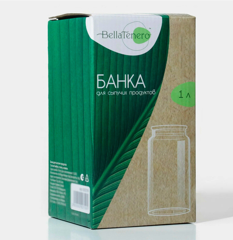 9292699 Банка стеклянная для хранения сыпучих продуктов BellaTenero Эко, 1,3 л .