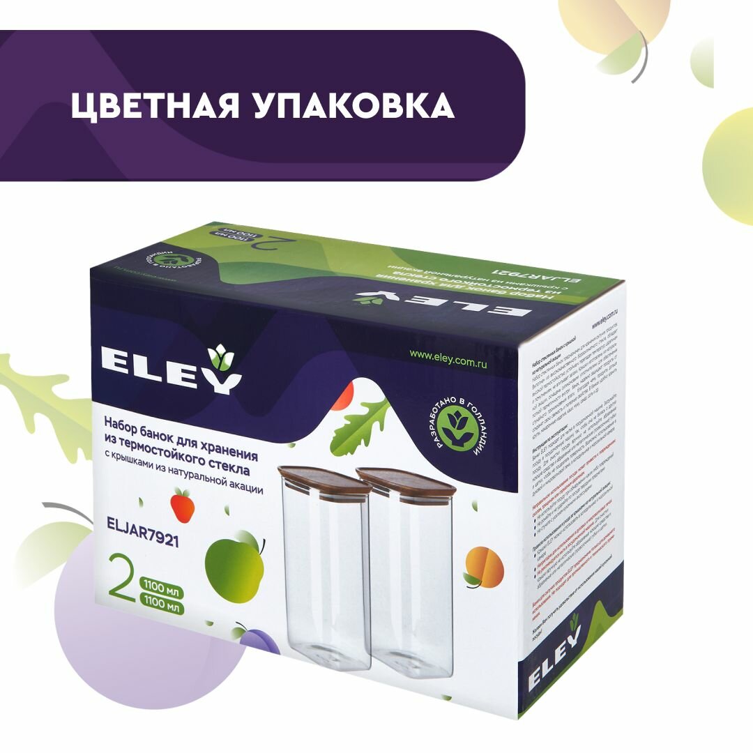 Купить Набор банок 1100мл для хранения еды и сыпучих продуктов из жаропрочного стекла Eley с крышкой из натуральной акации, 2шт