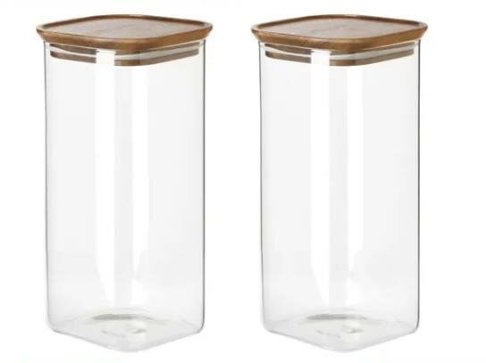 Набор банок 1900мл для хранения еды и сыпучих продуктов из жаропрочного стекла Eley с крышкой из натуральной акации, 2шт