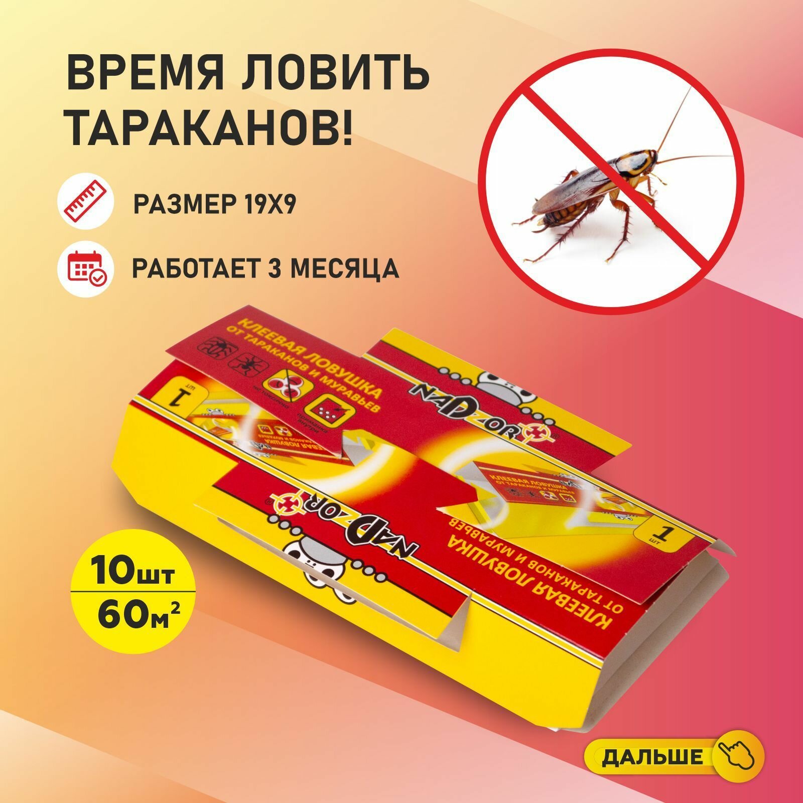 Ловушка для тараканов, клеевая, 10шт Nadzor, средство от тараканов