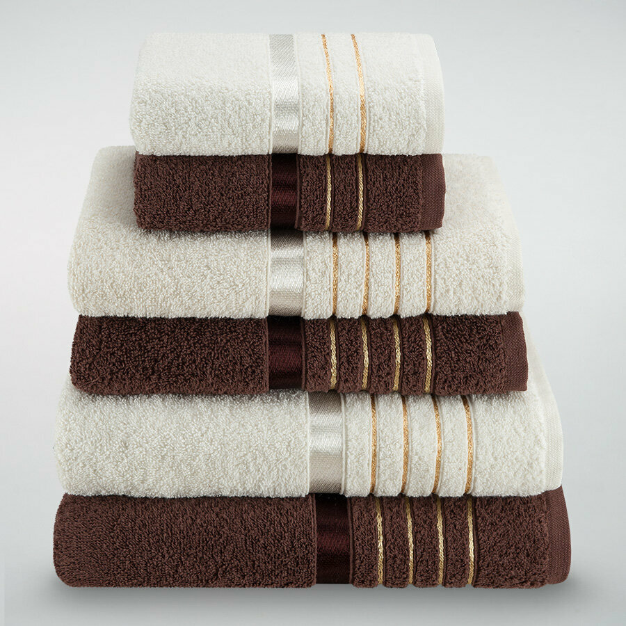 Набор полотенец махровых Diana "Эваланж", 6 шт. Какао/Молочный, 100% хлопок