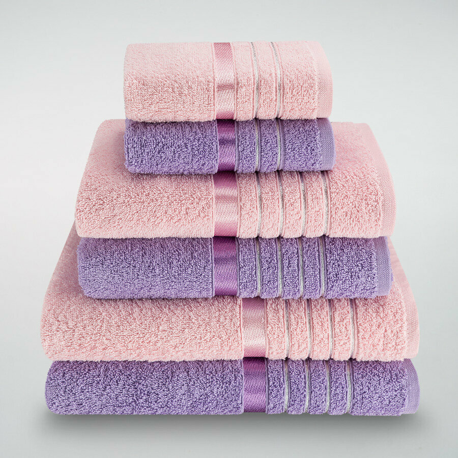 Купить Набор полотенец махровых Diana "Эваланж", 6 шт, Сирень/Розовый, 100% хлопок