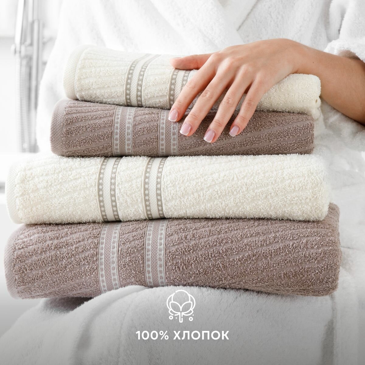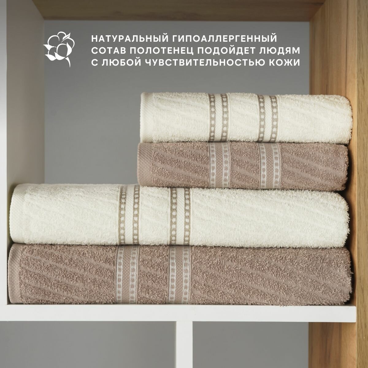Набор полотенец махровых Diana "Авеню", 4 шт. Цикорий/Молочный, 100% хлопок