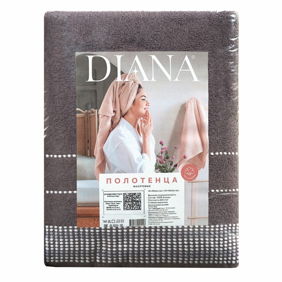 Полотенца махровые Diana, Лион, цвет: Грей/Серый 50х80 см (2 шт.), 70х130 см (2 шт.)