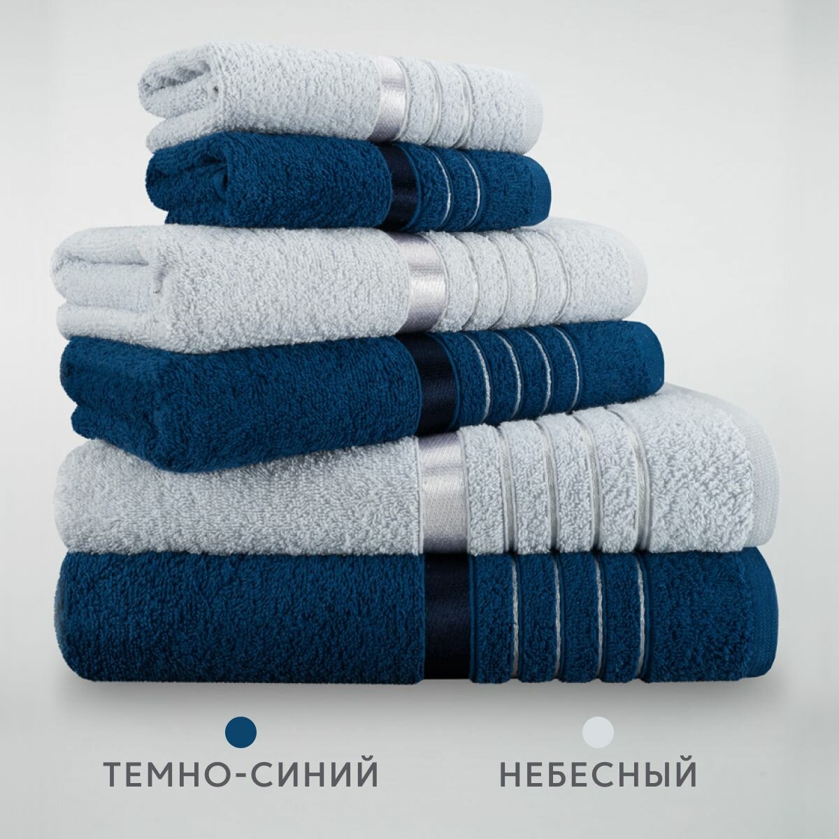 Купить Набор полотенец махровых Diana "Эваланж", 6 шт, Темно-синий/Небесный, 100% хлопок
