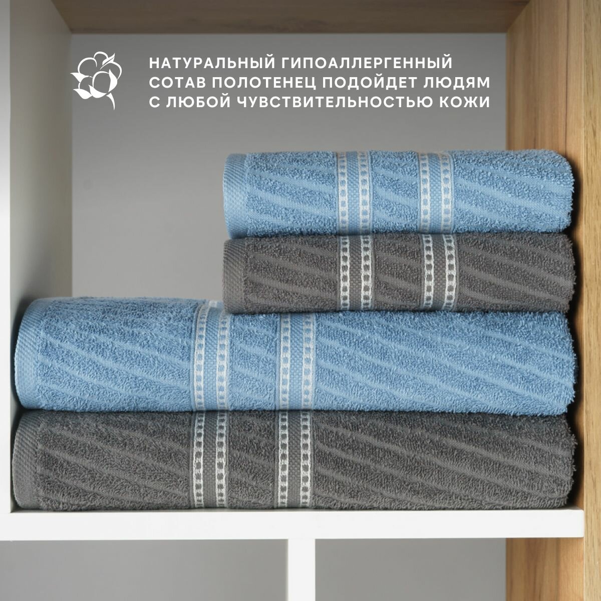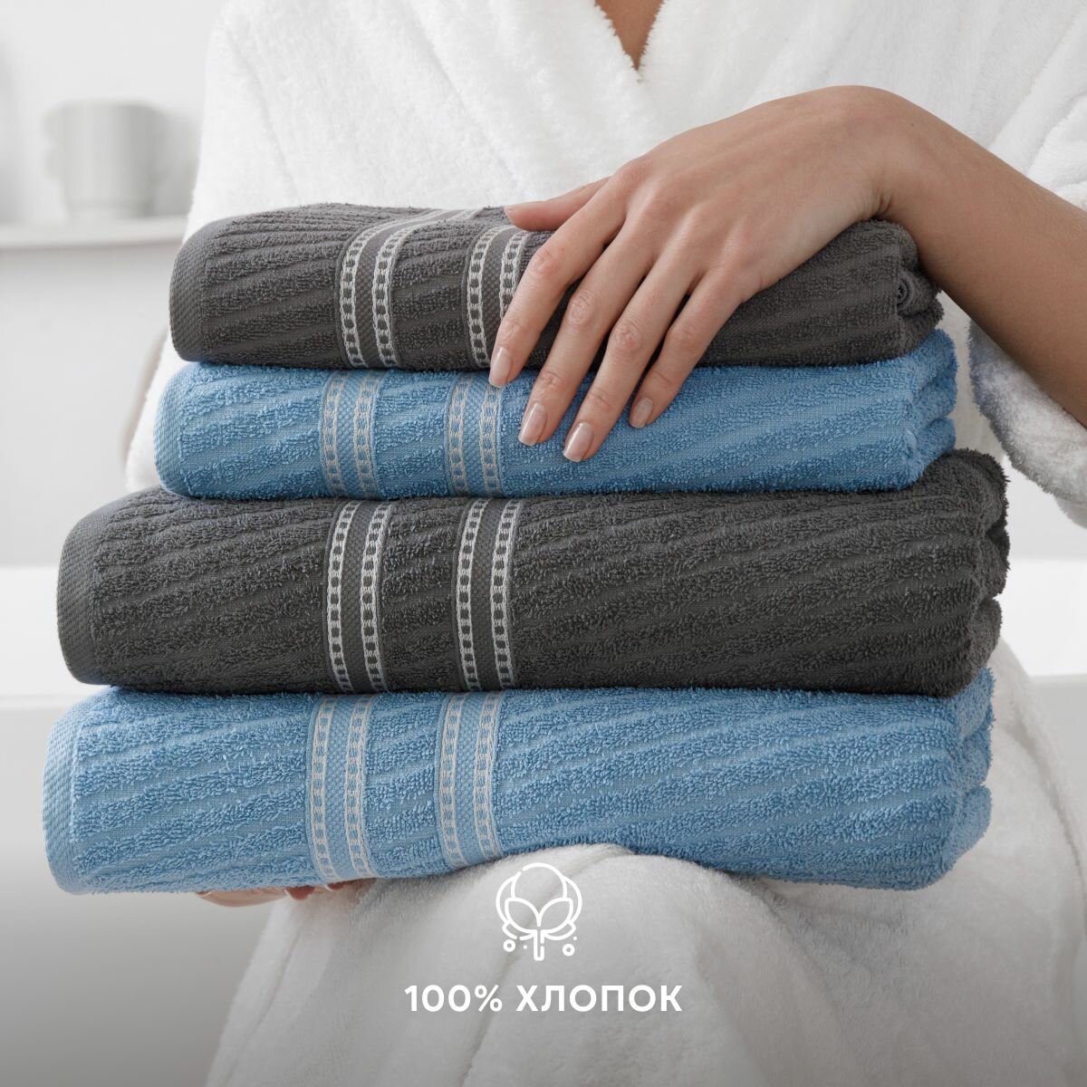 Набор полотенец махровых Diana "Элегия", 4 шт, Темно-голубой/Графит, 100% хлопок интересное: