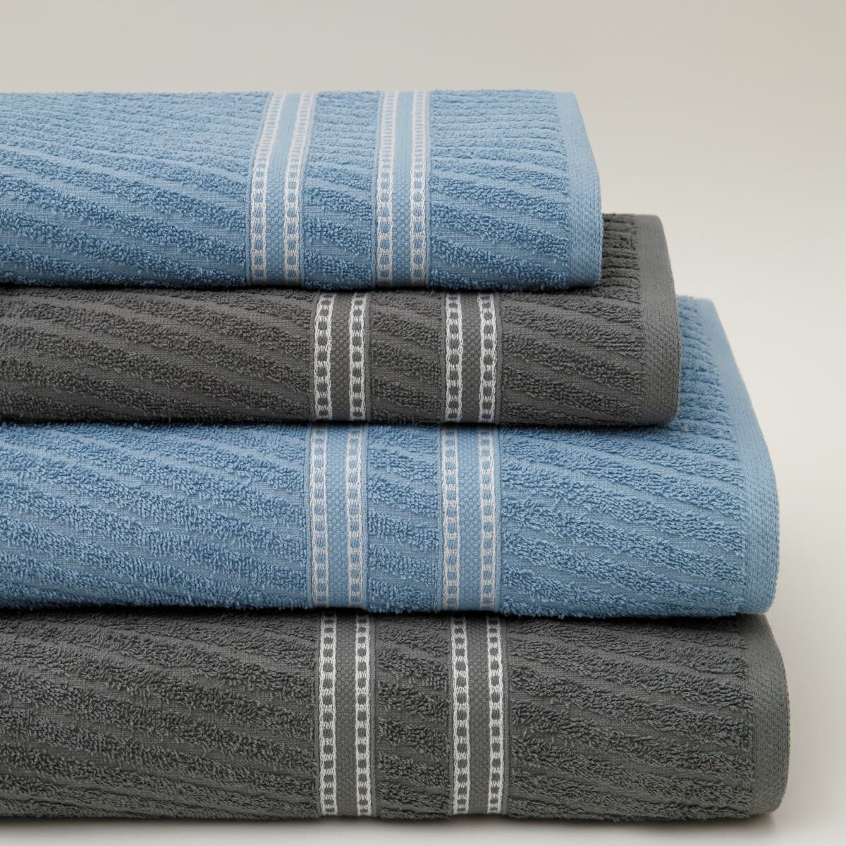 Набор полотенец махровых Diana "Элегия", 4 шт. Темно-голубой/Графит, 100% хлопок