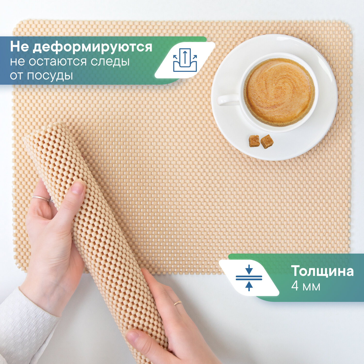 Салфетки сервировочные на стол/ плейсматы VILINA/ плейсмат для сервировки 2 шт 35х35 см из вспененного ПВХ светло-бежевый
