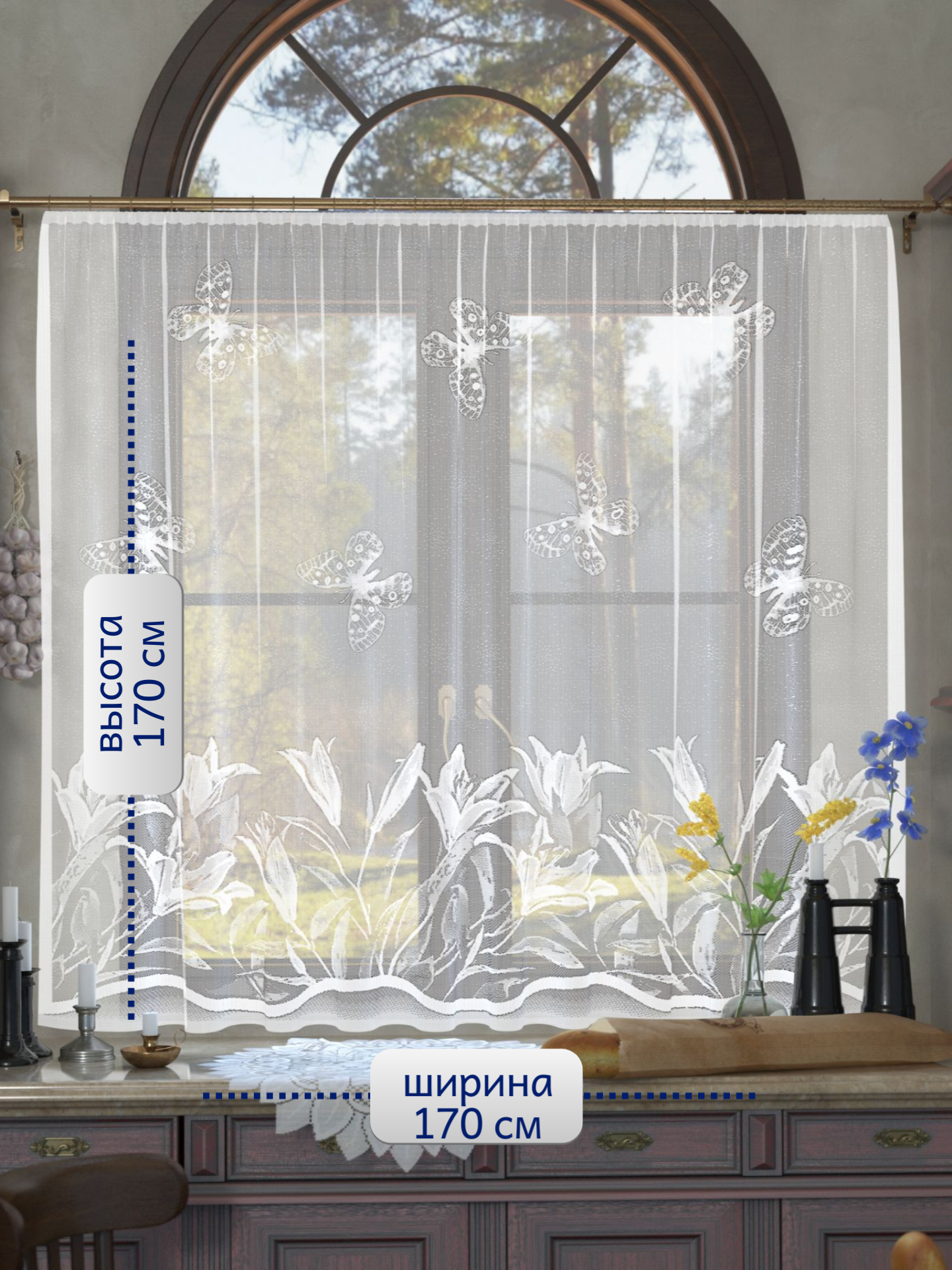 Тюль для кухни без шторной ленты 170*170 см интересное: