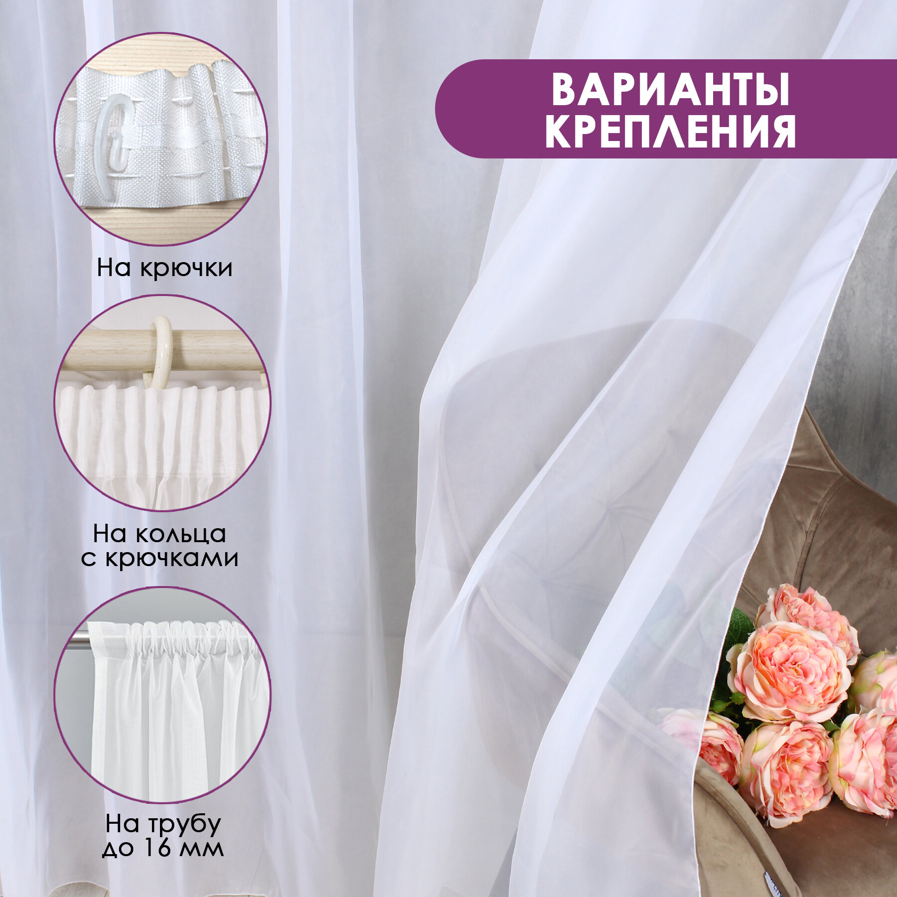 | Комплектация | Тюль готовая на шторной ленте - 1 шт. |