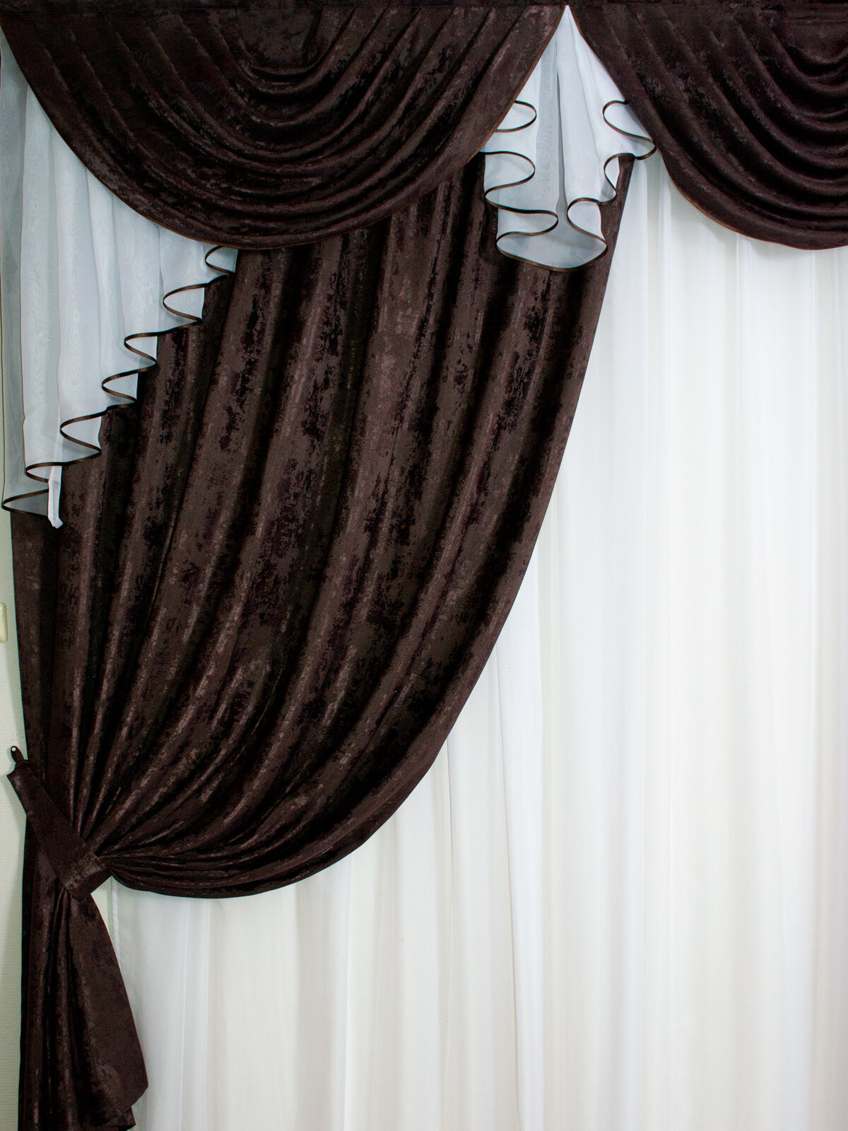 Шторы интерьерные с ламбрекеном и подхватами Графиня шоколад