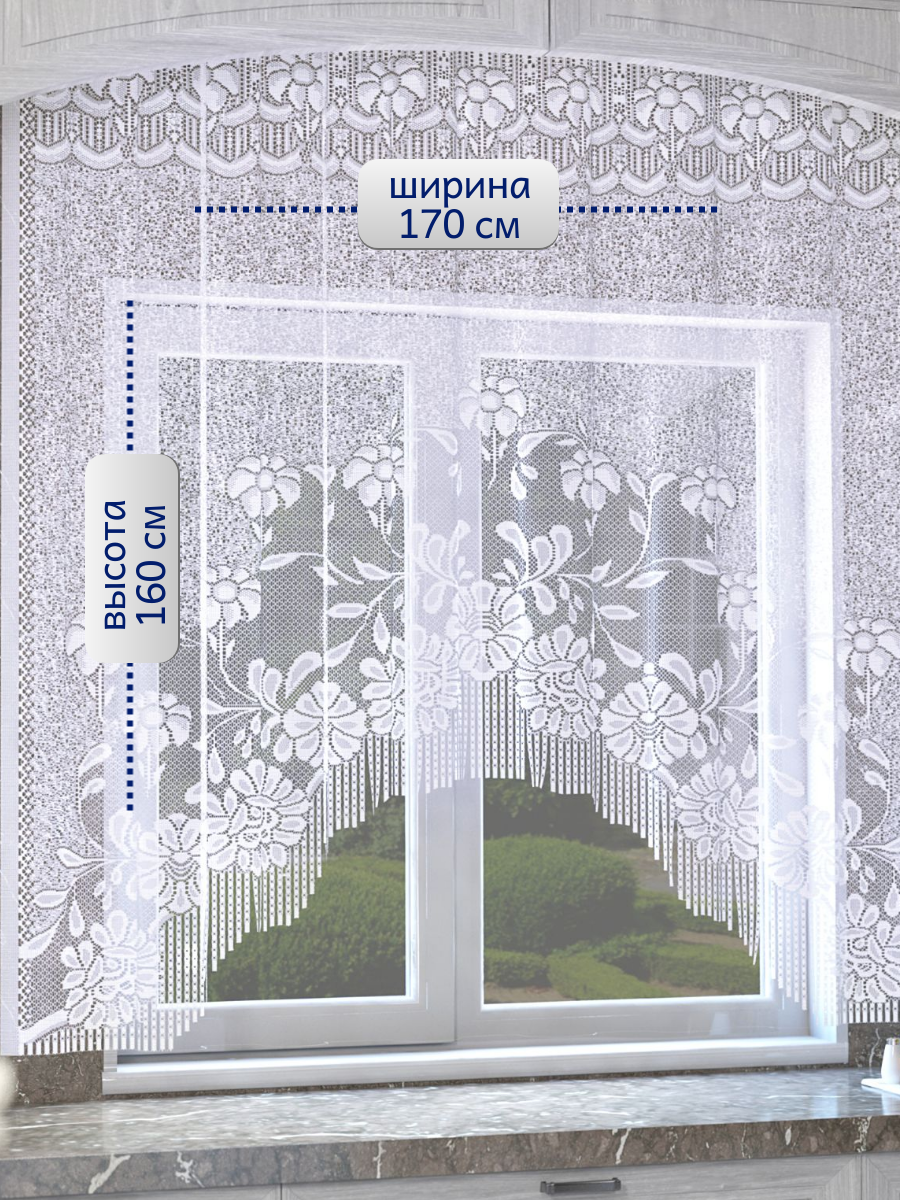 Тюль короткий для кухни 170*160см. Занавески без шторной ленты интересное: