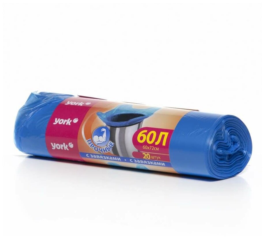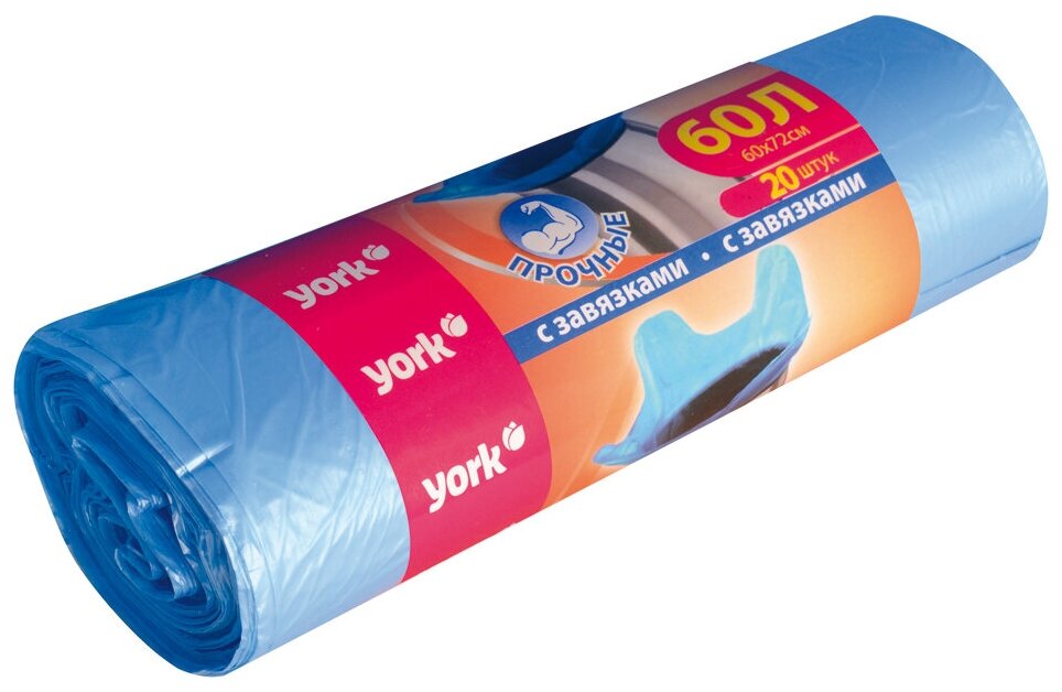 Мешки для мусора York с завязками 60 л, 20 шт., синий