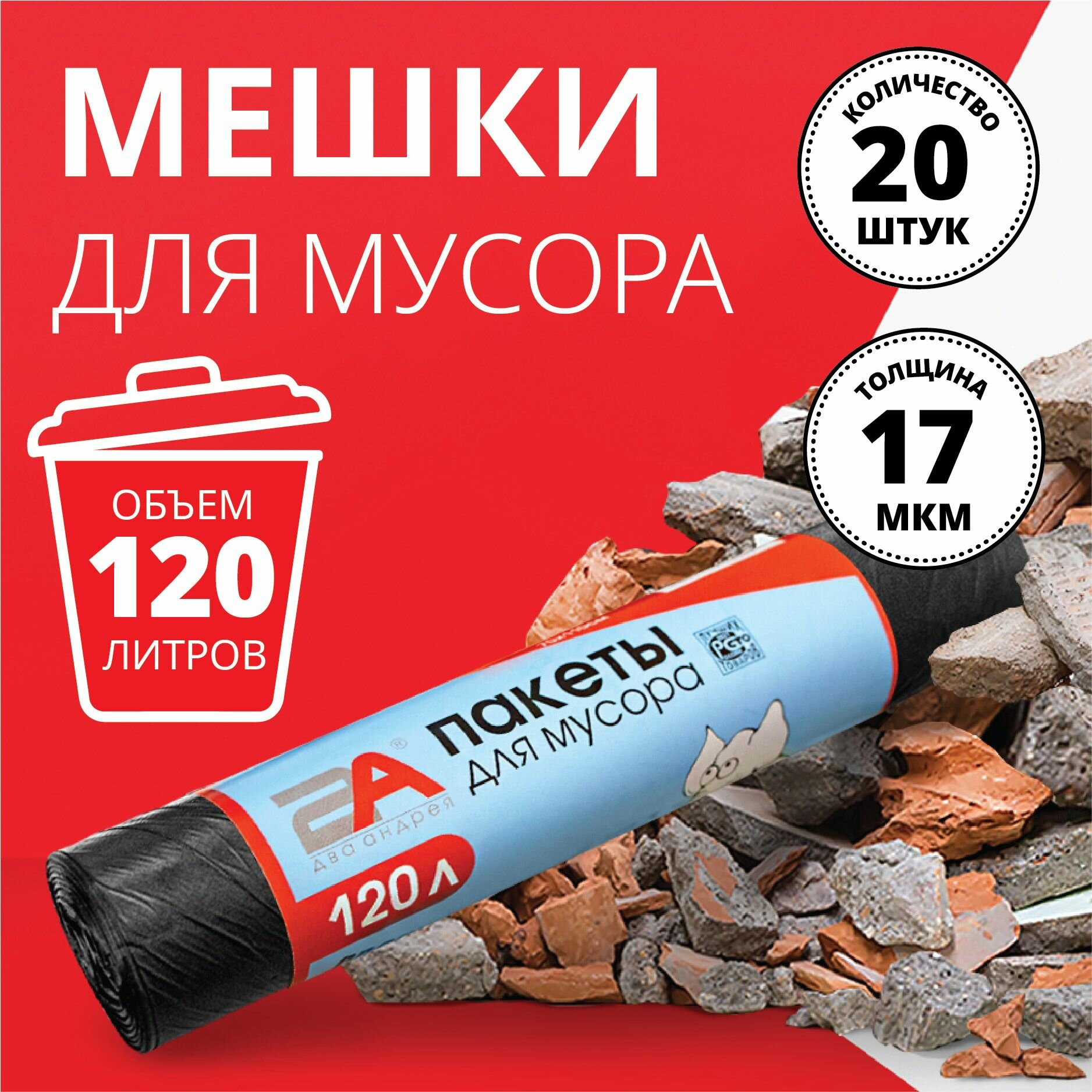 СохранитьМешки для мусора Два Андрея, черные, полиэтилен, 120л, 20 штук интересное: