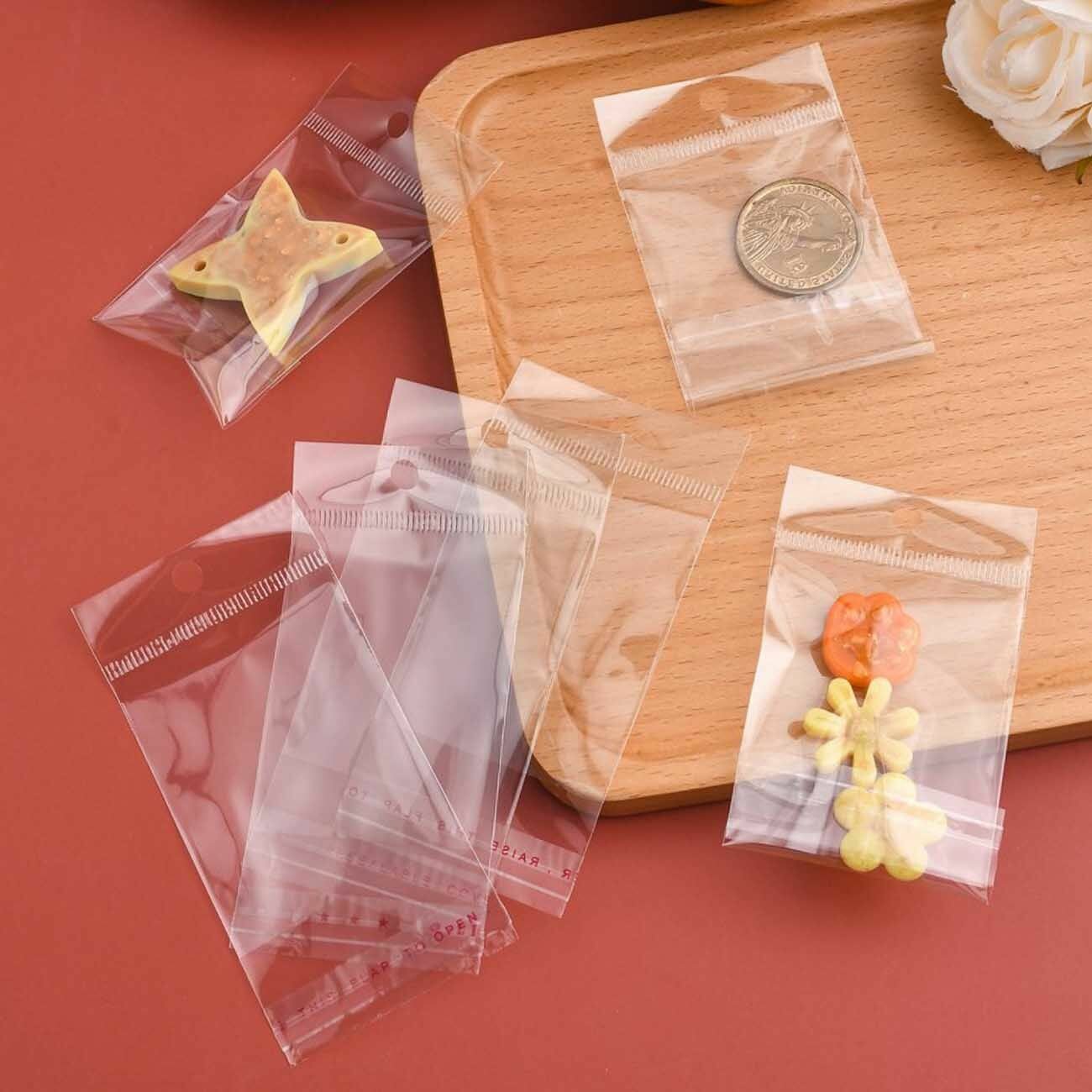 500 пакетов 5х5,5+4 см упаковочных прозрачных с подвесом, белым фоном и клеевым клапаном