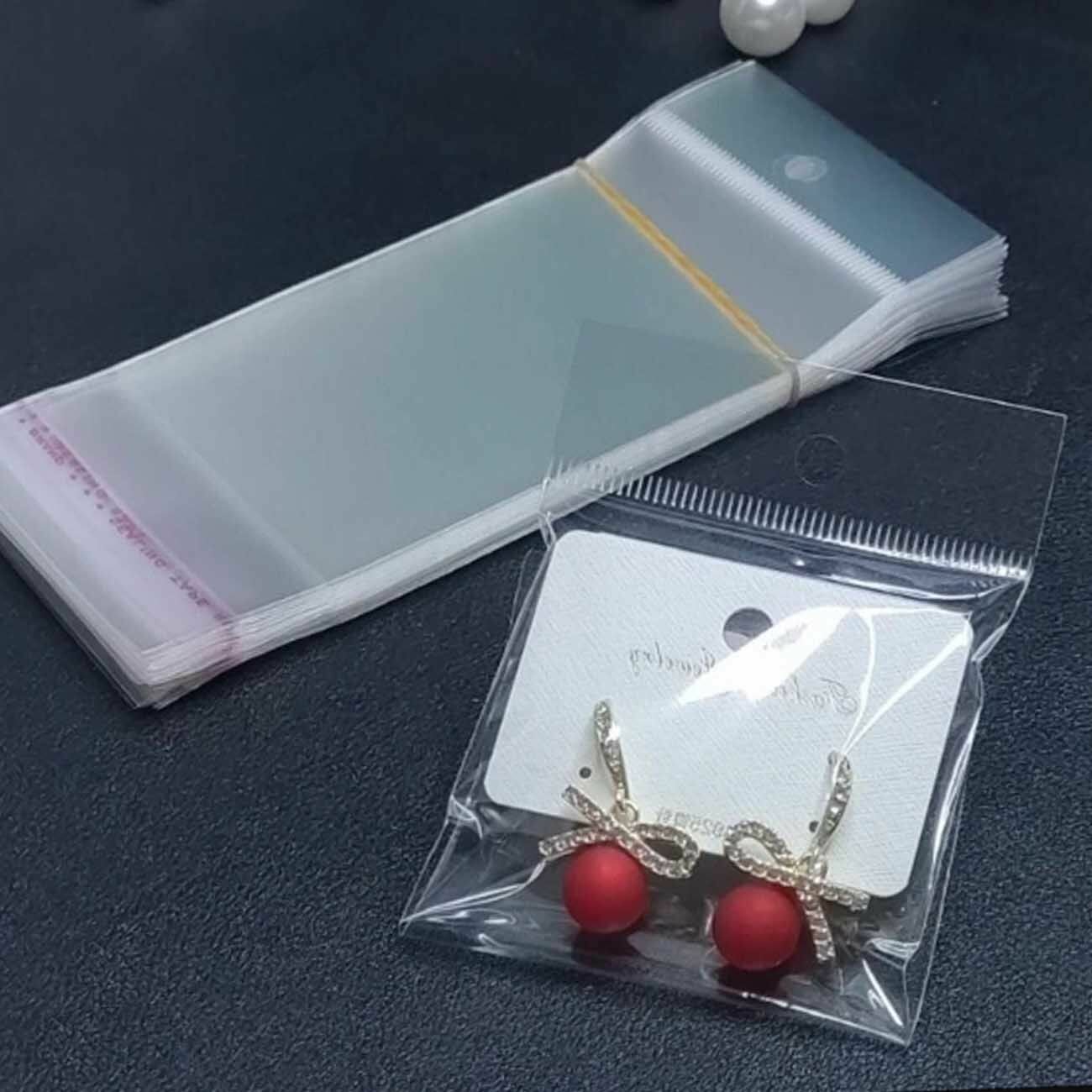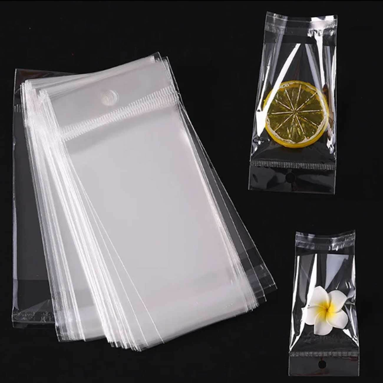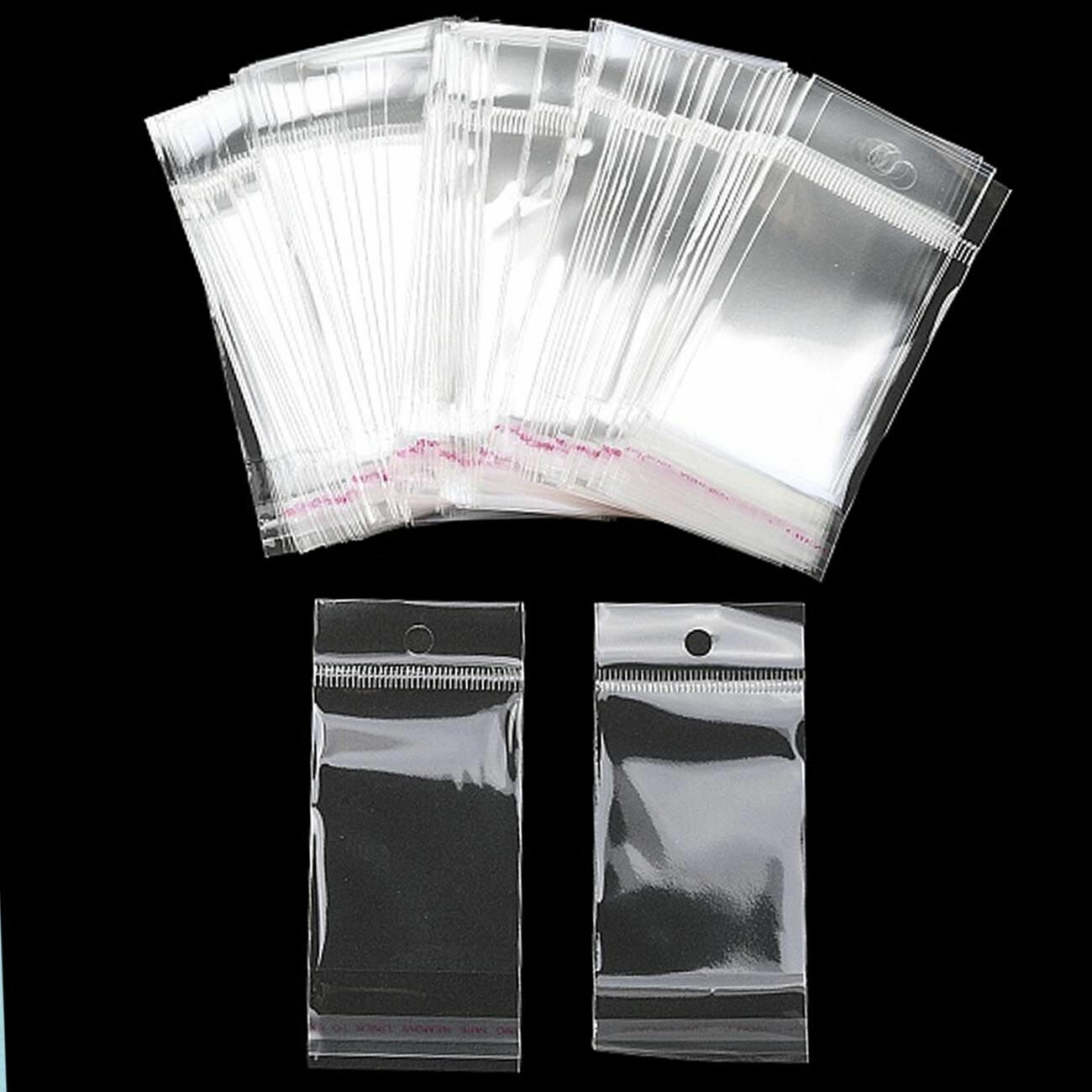 500 пакетов 5х8+5 см с белым подвесом и клеевым клапаном для упаковки из прозрачной пленки бопп