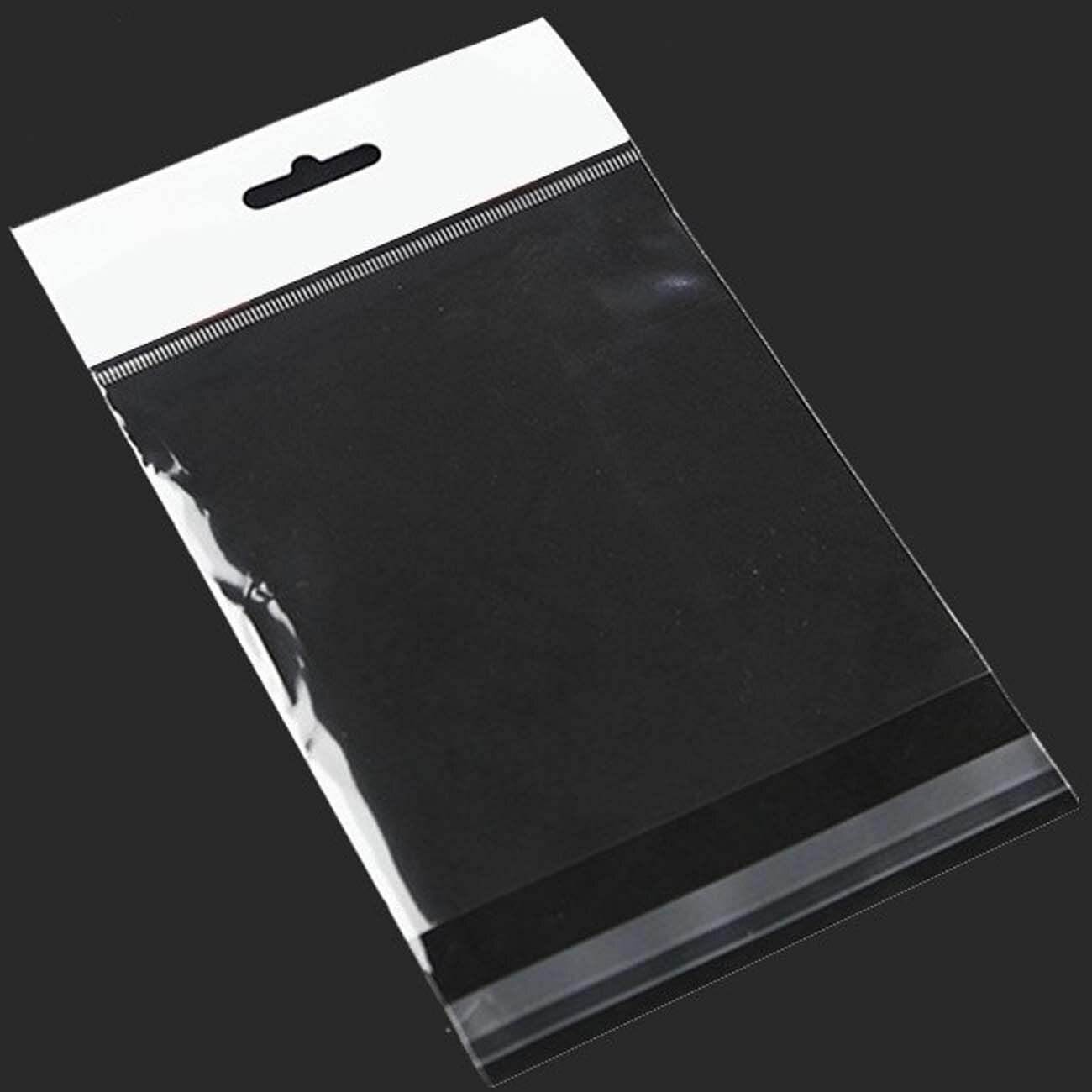 500 пакетов 5х8+5 см с белым подвесом и клеевым клапаном для упаковки из прозрачной пленки бопп
