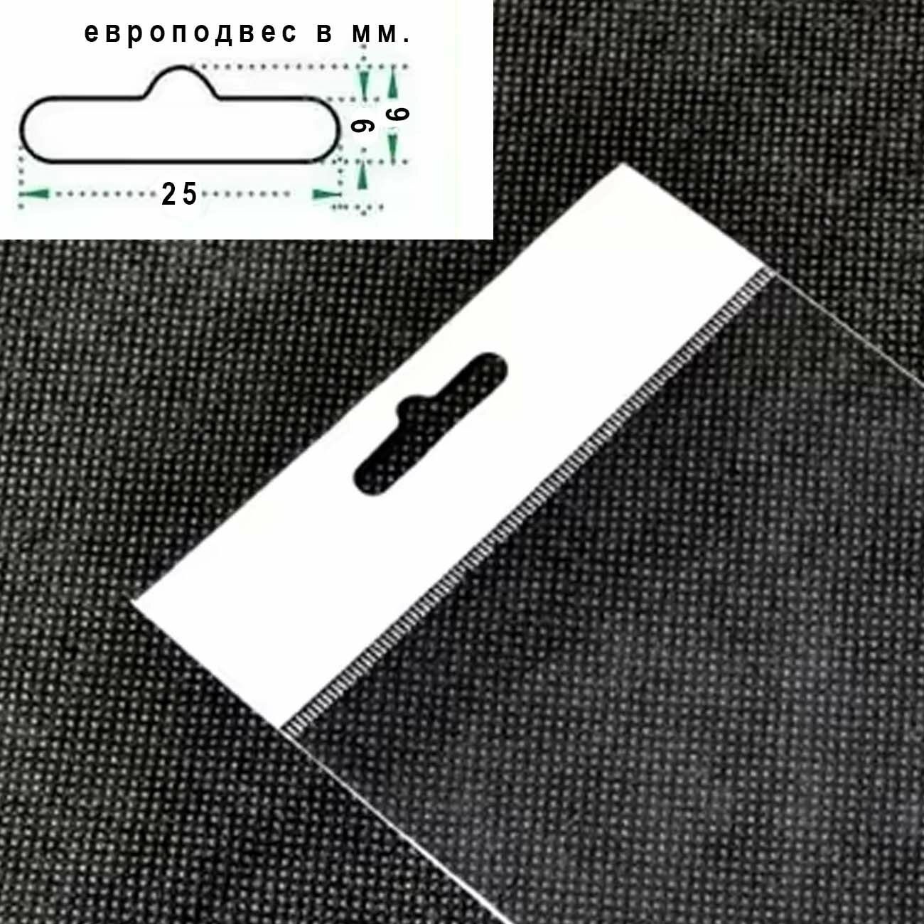 500 пакетов 12х18+6 см с белым европодвесом и клеевым клапаном для упаковки из прозрачной пленки бопп