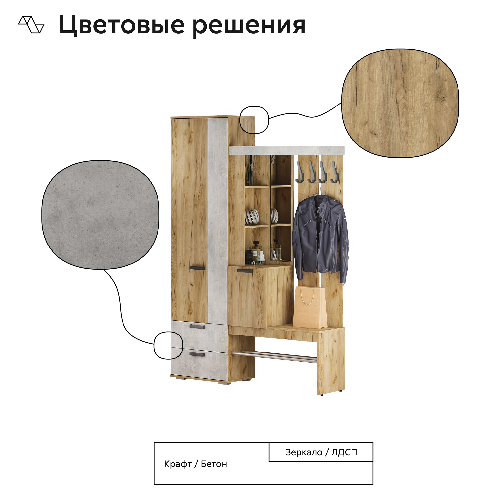 Прихожая с зеркалом Нонтон Трамп крафт / бетон, 150х37.2х217.6 см интересное: