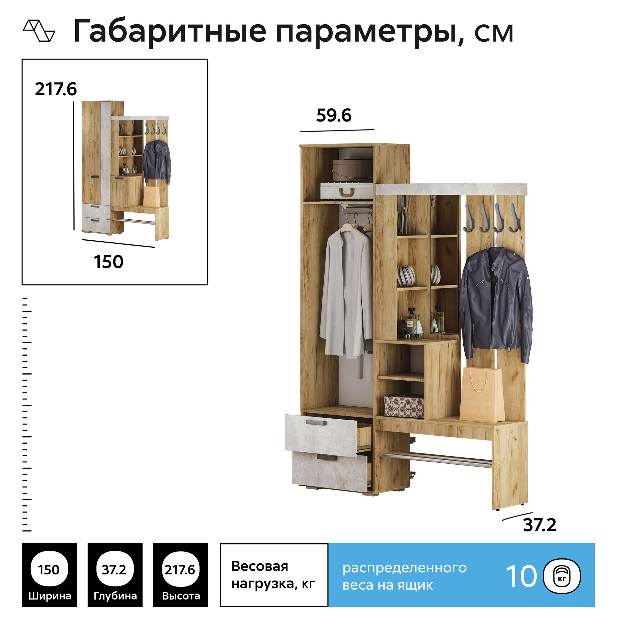 Прихожая BTS Трамп крафт / бетон 150х37.2х217.6 см
