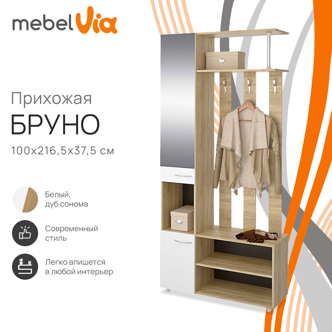 Купить Прихожая MebelVia "Бруно", дуб сонома/белый, с зеркалом, ЛДСП