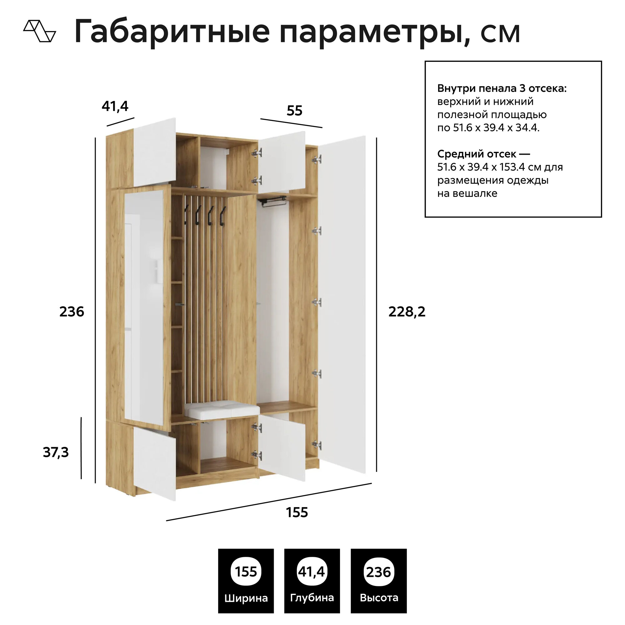 СохранитьПрихожая с зеркалом Нонтон Бостон №3, дуб крафт золотой / белый глянец, 155 см интересное: