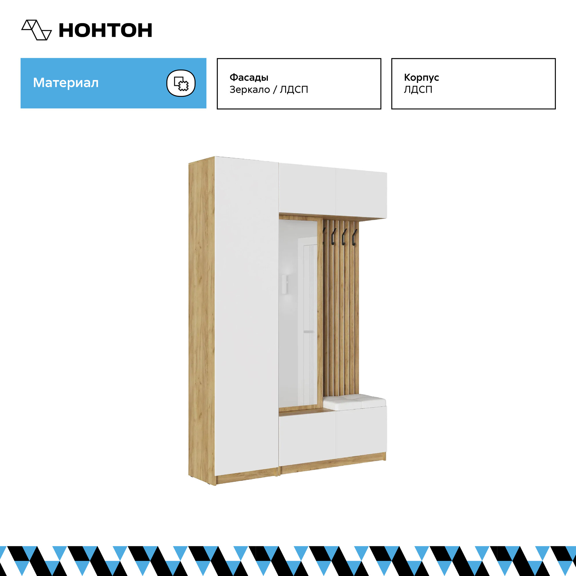 Купить Прихожая с зеркалом Нонтон Бостон №3, дуб крафт золотой / белый глянец, 155 см