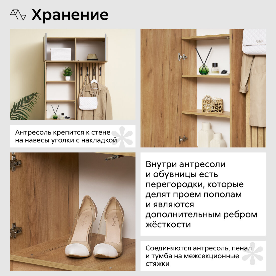 Прихожая с обувницей Нонтон Бостон, дуб крафт серый / бетонный камень, 60 см