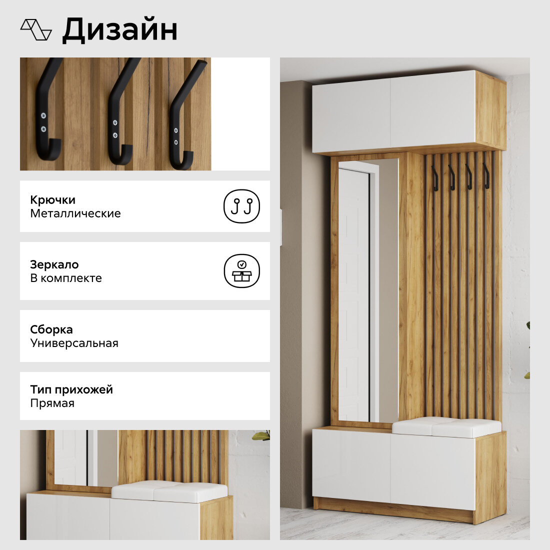 СохранитьПрихожая с зеркалом Нонтон Бостон, дуб крафт золотой / белый глянец, 100 см интересное: