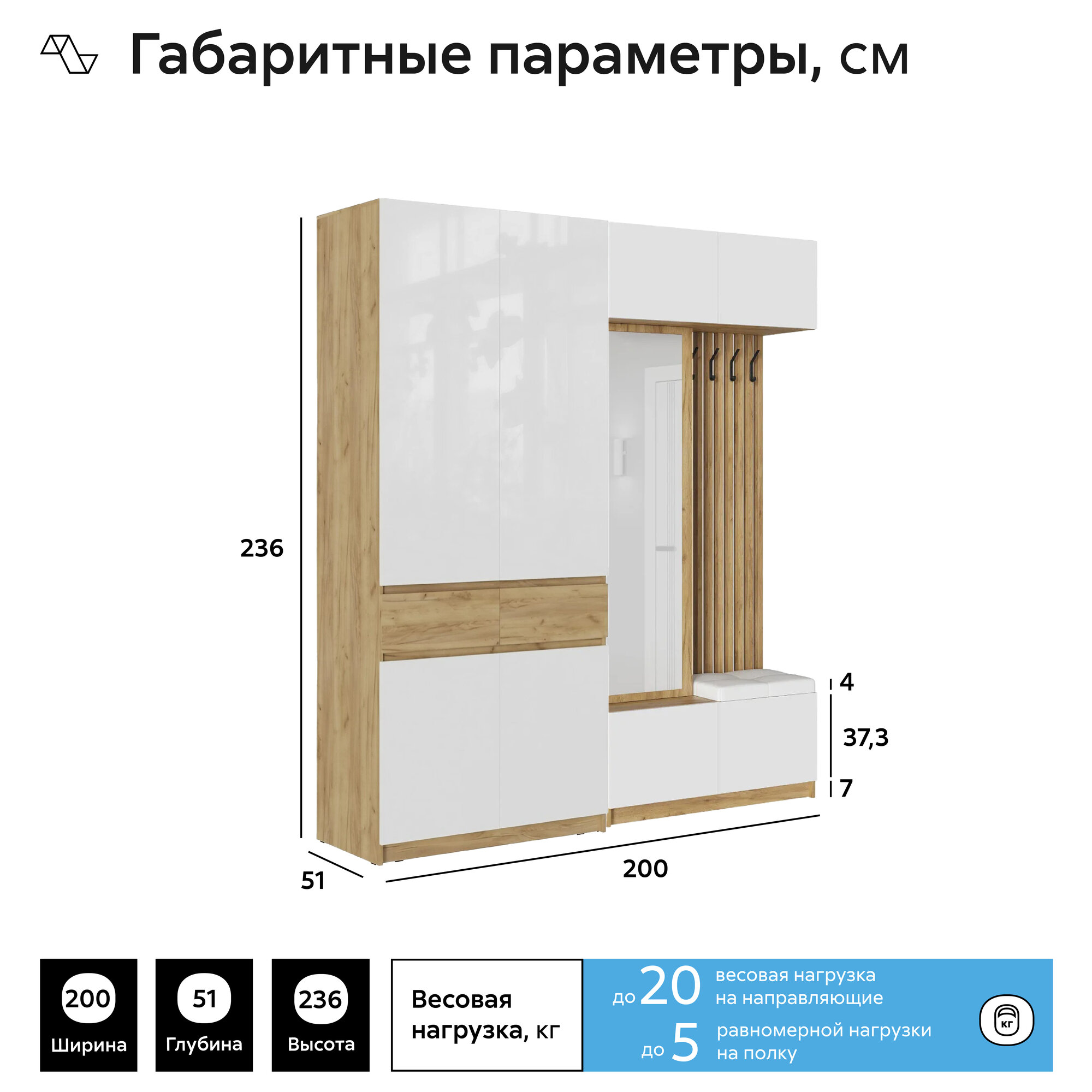 Купить Прихожая с зеркалом и шкафом Нонтон Бостон №1, дуб крафт золотой / белый глянец, 200 см