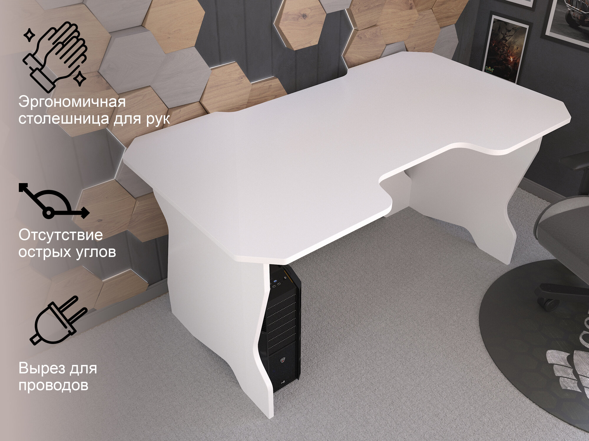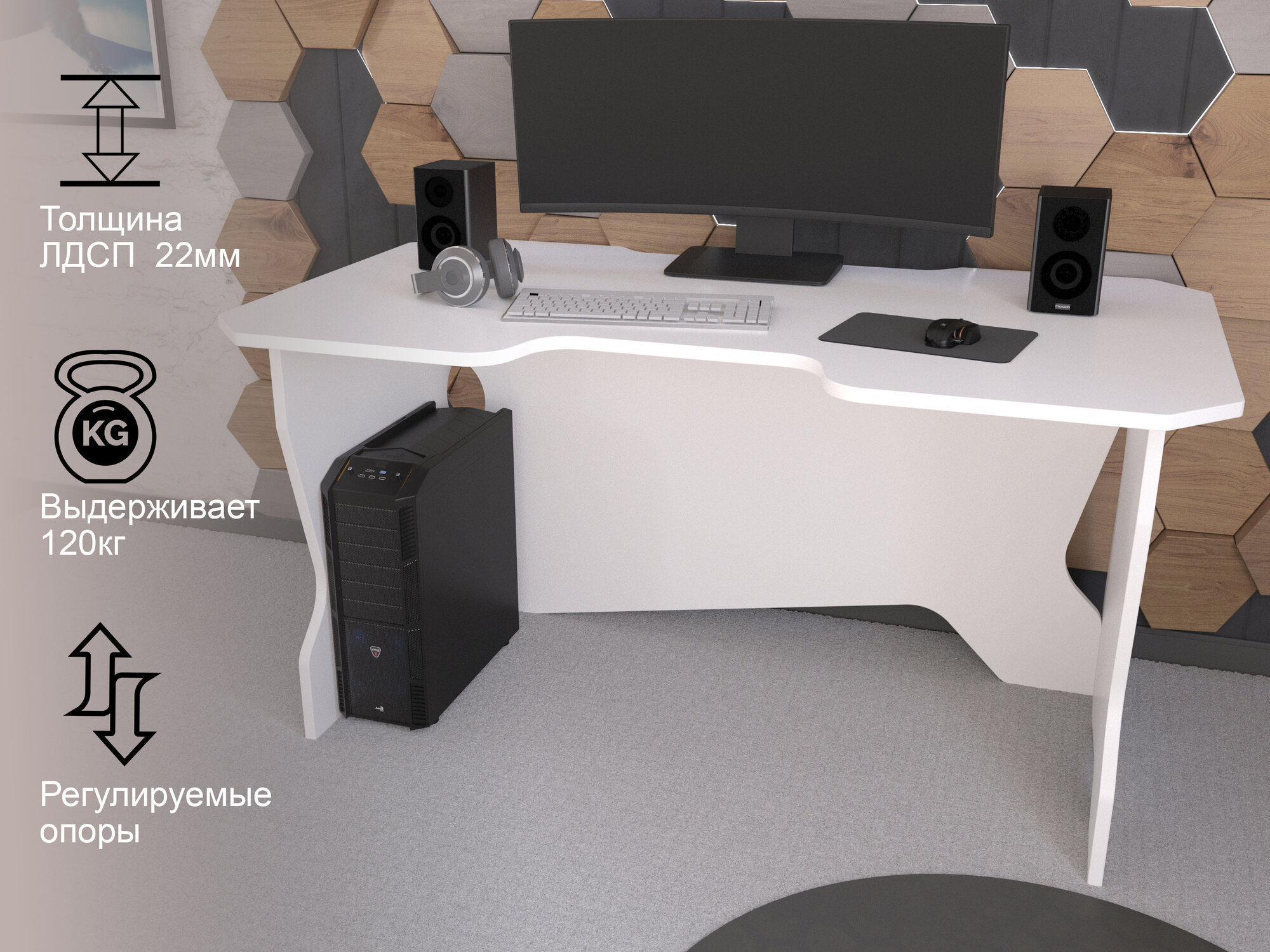 Игровой компьютерный стол белый 120см интересное: