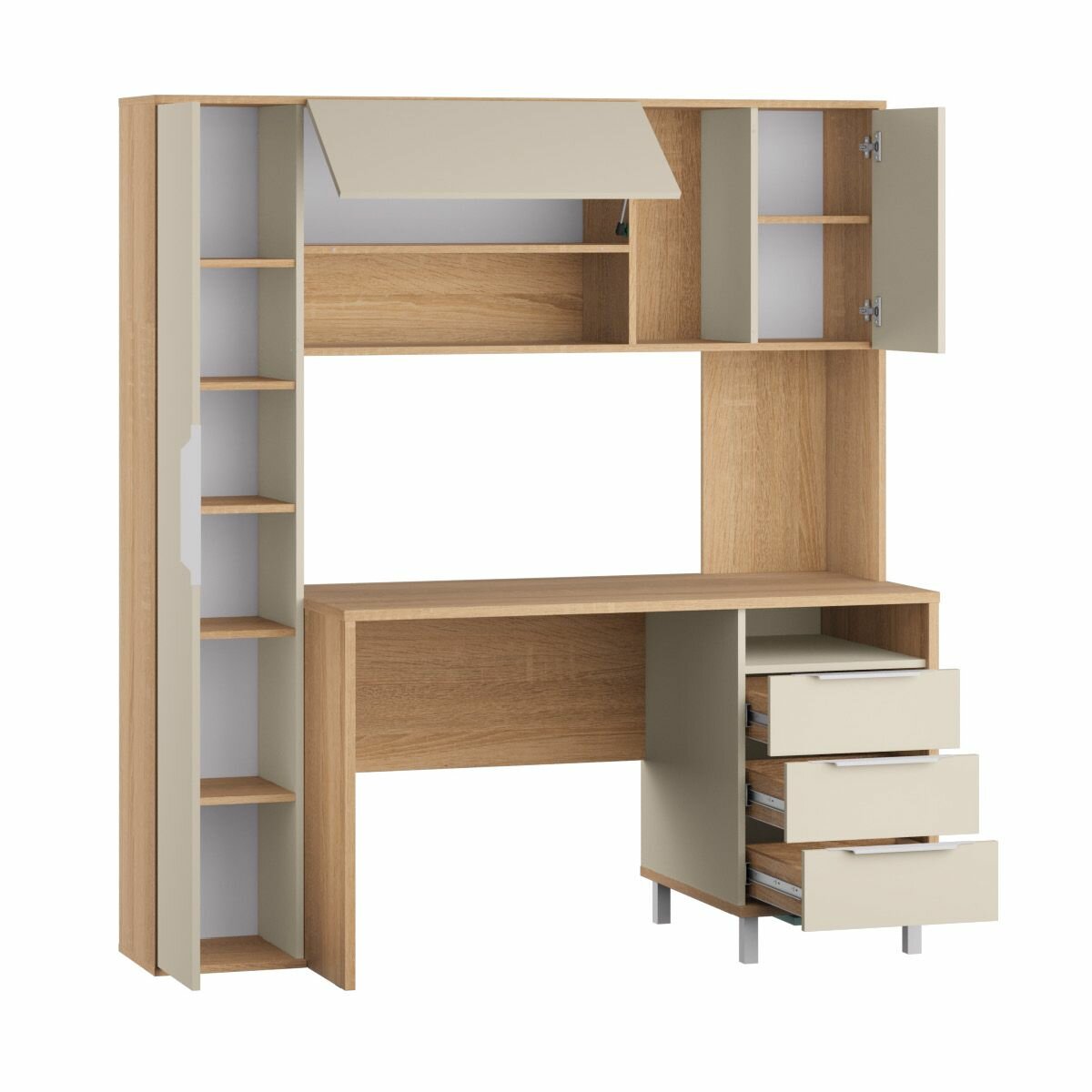 Стол письменный с пеналом и надстройкой Mobi Комфорт 12.95, 162х60х180 см, 3 ящика, цвет дуб сонома/белый
