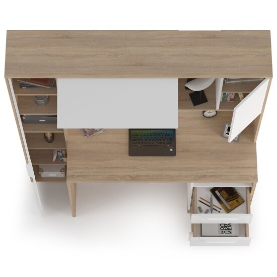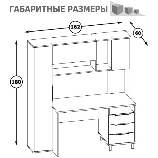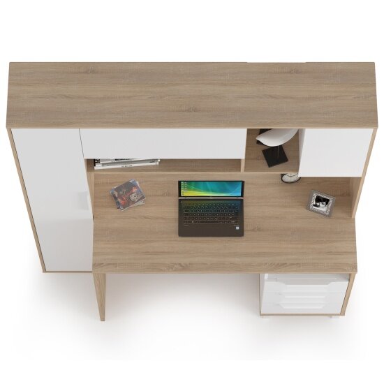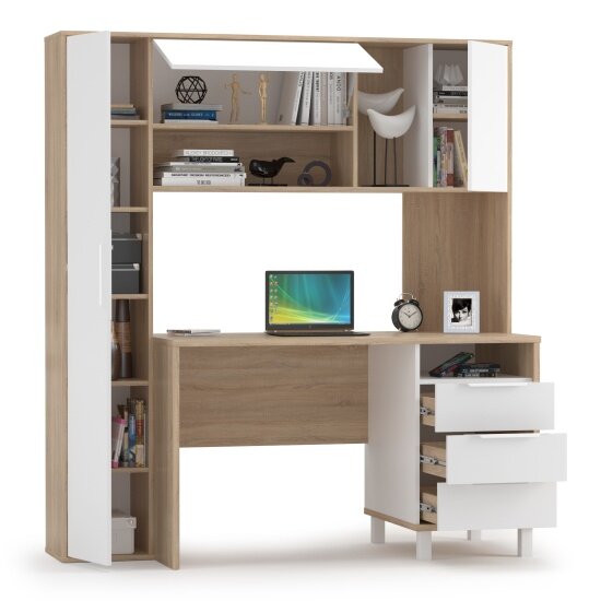 Стол письменный с пеналом и надстройкой Mobi Комфорт 12.95, 162х60х180 см, 3 ящика, цвет дуб сонома/белый