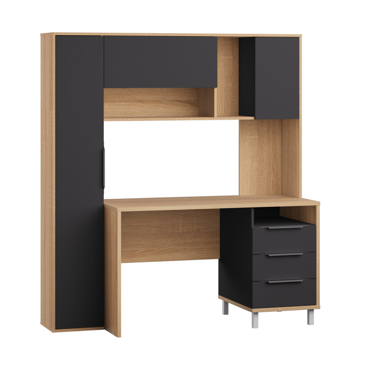 Стол письменный с пеналом и надстройкой Mobi Комфорт 12.95, 162х60х180 см, 3 ящика, цвет дуб сонома/белый