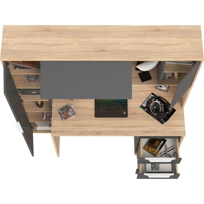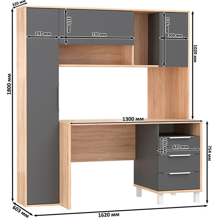 СохранитьКомпьютерный стол Комфорт 12.95N цвет дуб сонома/тёмно-серый, ШхГхВ 162х60,3х180 см, НЕ универсальная сборка интересное: