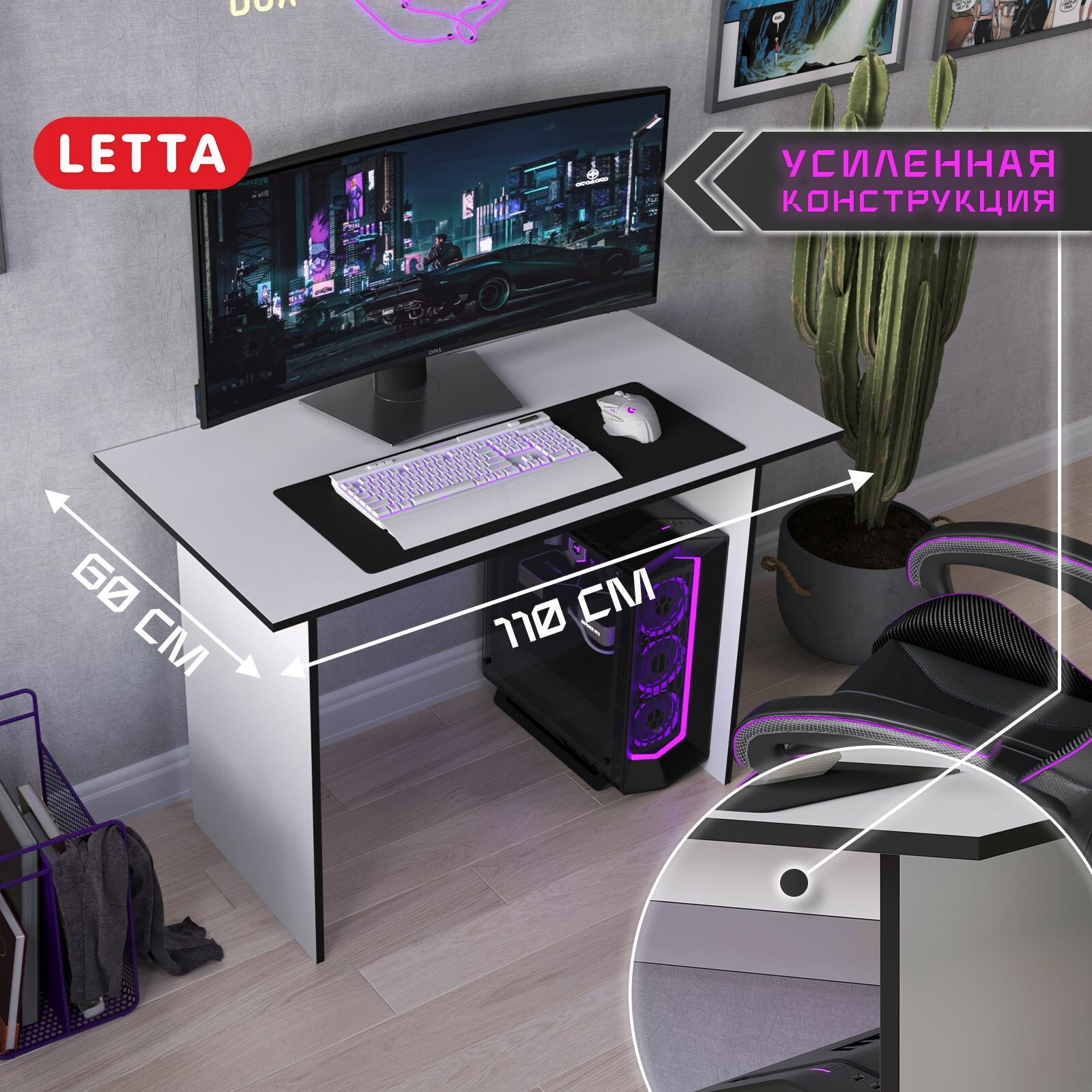 Геймерский стол LETTA Orion, белый, черная кромка, ЛДСП, 110х60х75 см интересное: