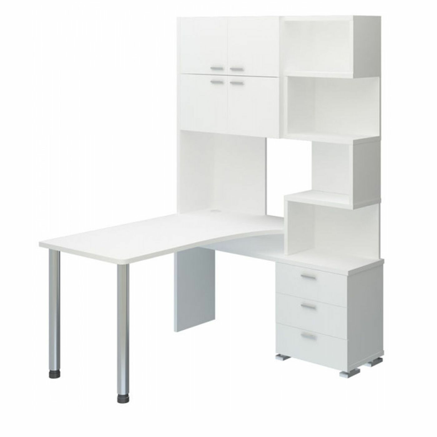Стол компьютерный Мэрдэс СР-500М/160 БЕ-ПРАВ Белый, с надстройкой, угловой, 130х160х199 см