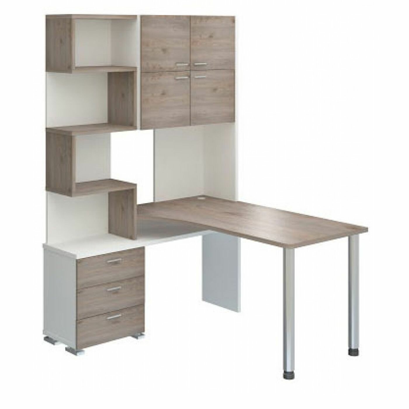 Стол компьютерный Мэрдэс СР-500М/160 БЕНН-ПРАВ Белый/Нельсон/Нельсон, с надстройкой, угловой, 130х160х199 см