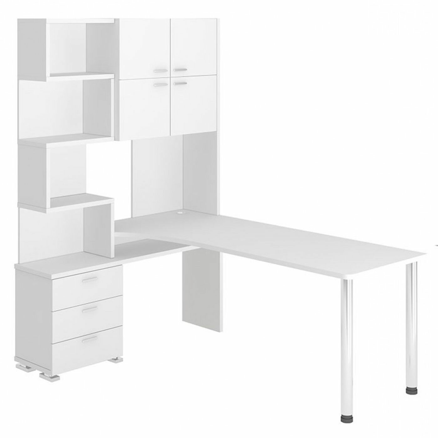 Стол компьютерный Мэрдэс СР-500М/140 БЕ-ПРАВ Белый, с надстройкой, угловой, 130х140х199 см