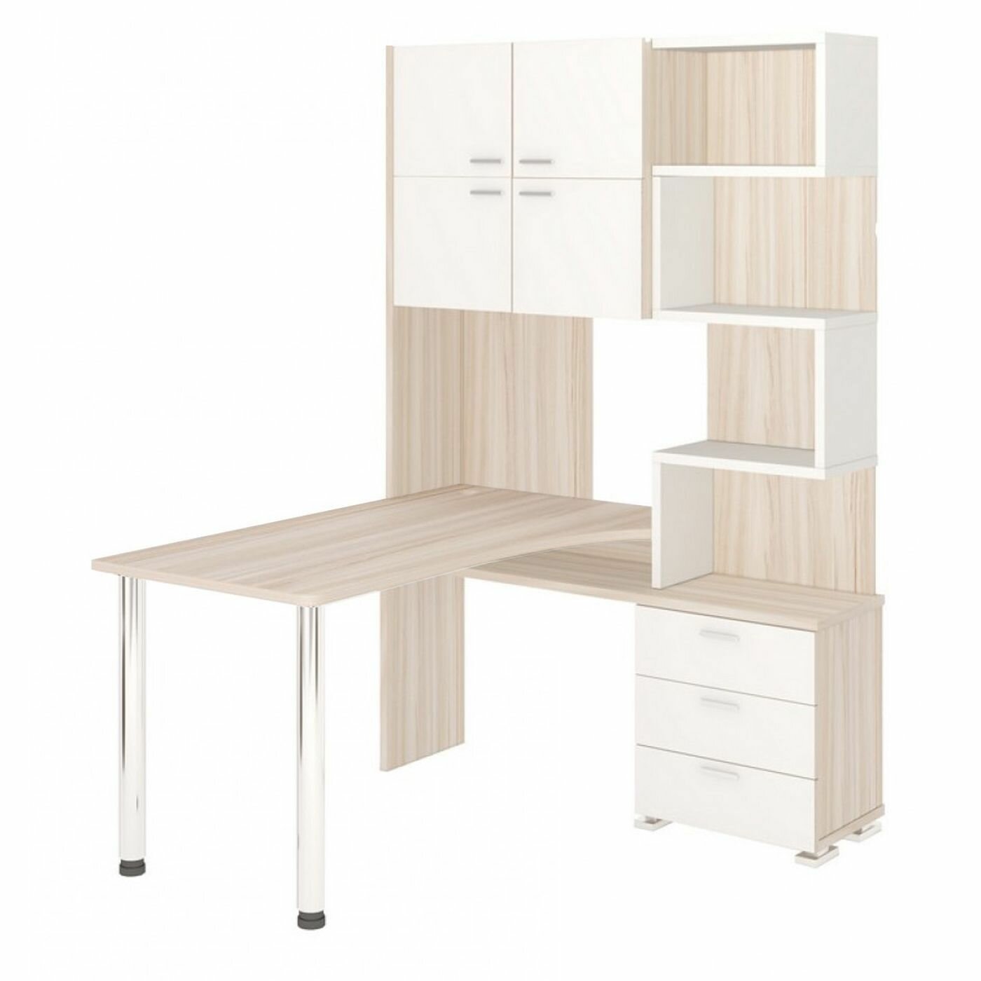 Стол компьютерный Мэрдэс СР-500М/140 БЕ-ПРАВ Белый, с надстройкой, угловой, 130х140х199 см