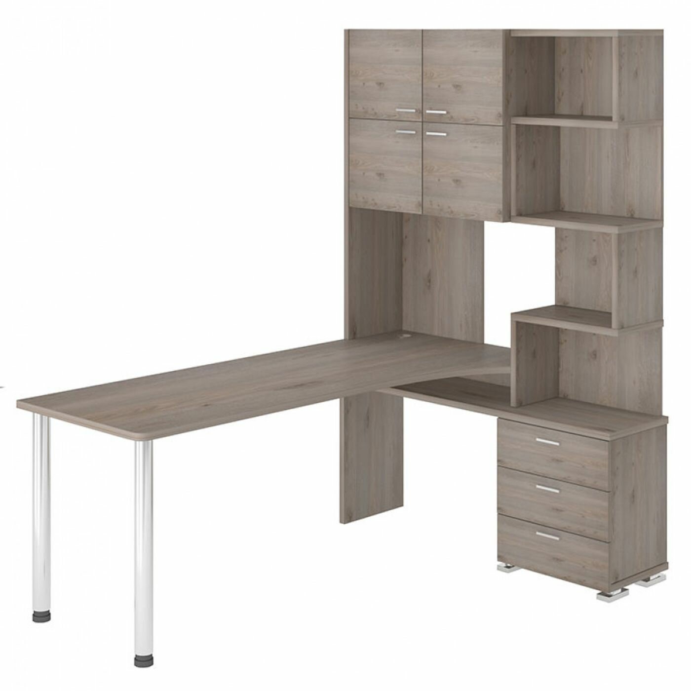 Стол компьютерный Мэрдэс СР-500М/160 БЕНН-ПРАВ Белый/Нельсон/Нельсон, с надстройкой, угловой, 130х160х199 см
