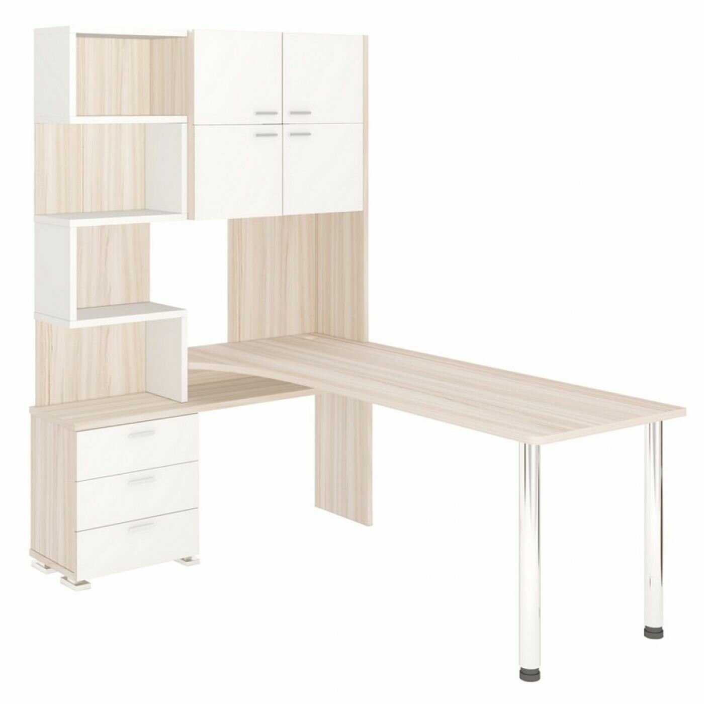 Стол компьютерный Мэрдэс СР-500М/140 БЕ-ПРАВ Белый, с надстройкой, угловой, 130х140х199 см