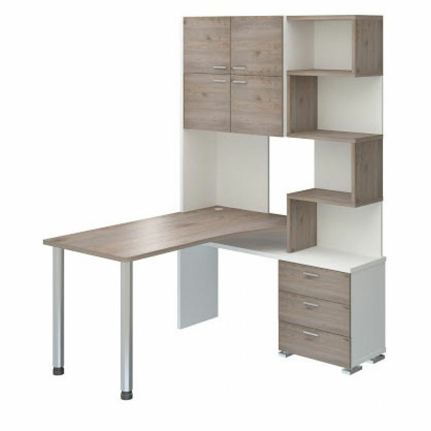 Стол компьютерный Мэрдэс СР-500М/190 БЕНН-ПРАВ Белый/Нельсон/Нельсон, с надстройкой, угловой, 130х190х199 см
