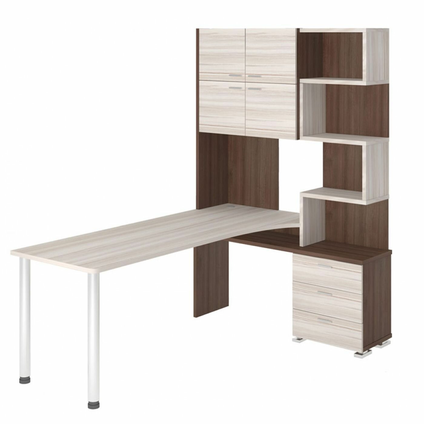 Стол компьютерный Мэрдэс СР-500М/140 НБЕН-ПРАВ Нельсон/Белый/Нельсон, с надстройкой, угловой, 130х140х199 см