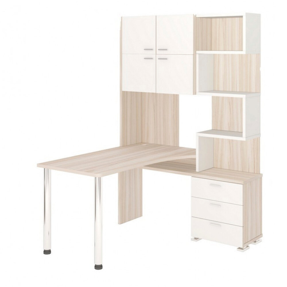 Стол компьютерный Мэрдэс СР-500М/140 БЕ-ПРАВ Белый, с надстройкой, угловой, 130х140х199 см