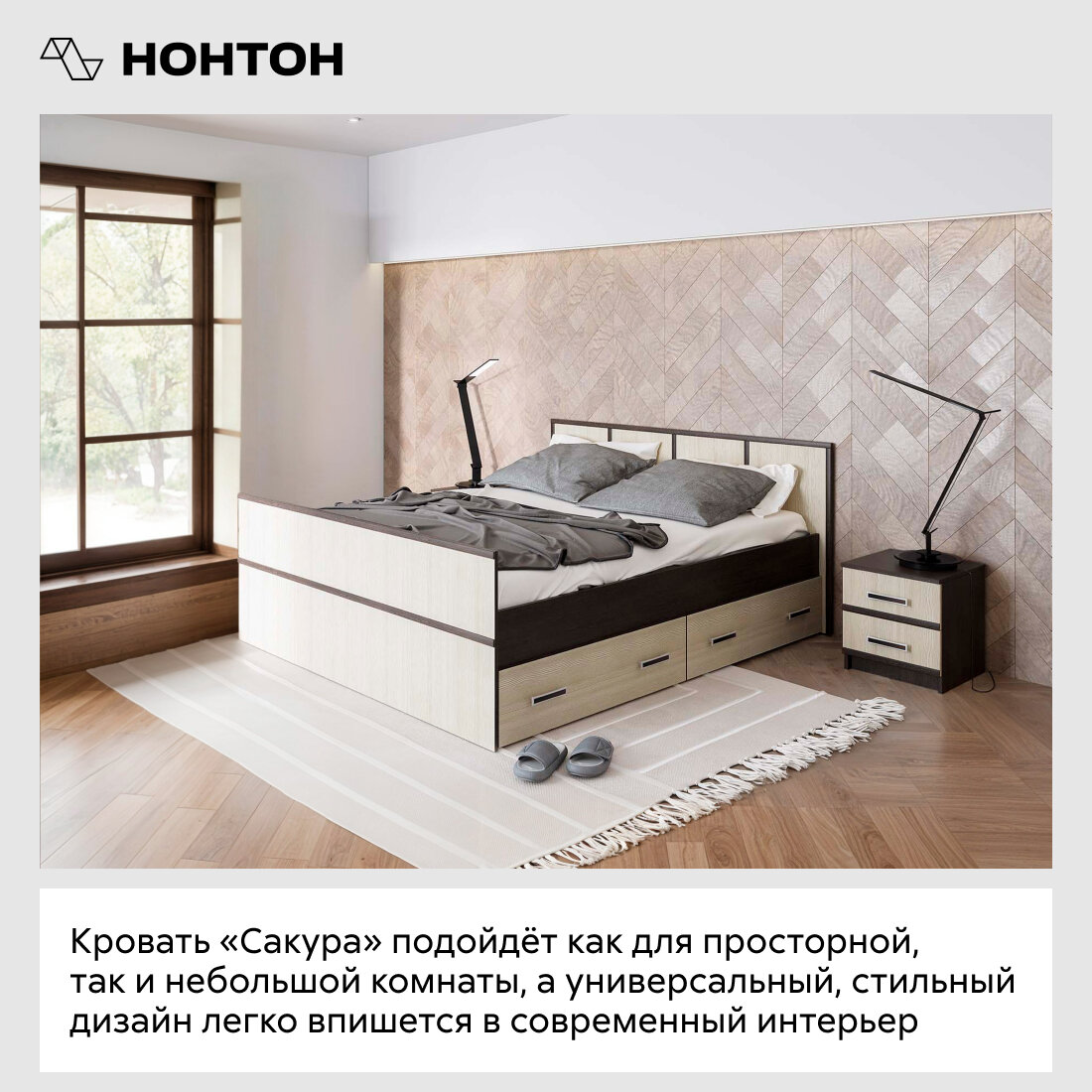 Купить Кровать двуспальная с ящиками Нонтон Сакура, настил, 160*200 см, венге / лоредо