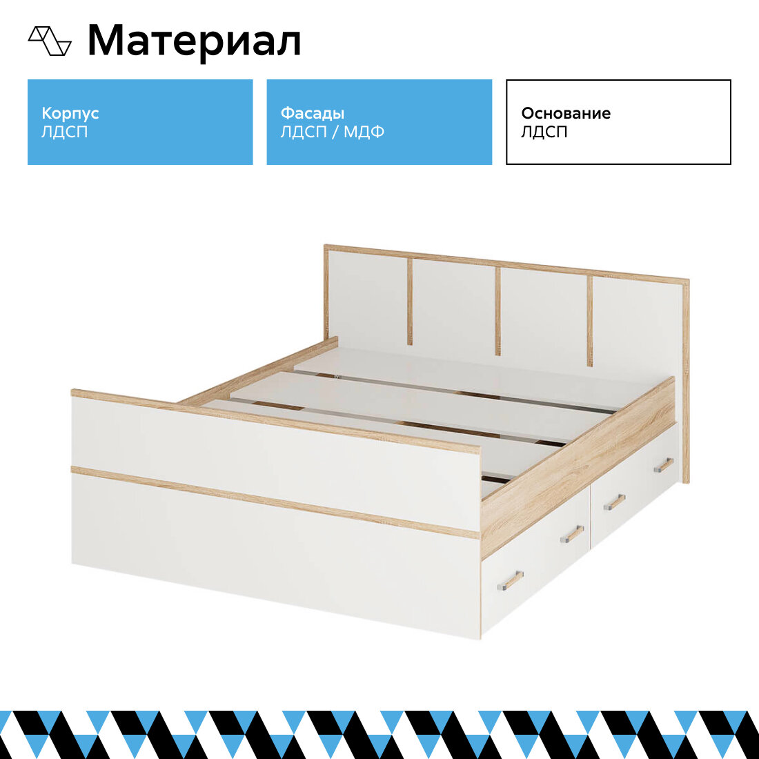 Кровать двуспальная с ящиками Нонтон Сакура, рейка, 160*200 см, дуб сонома / белый