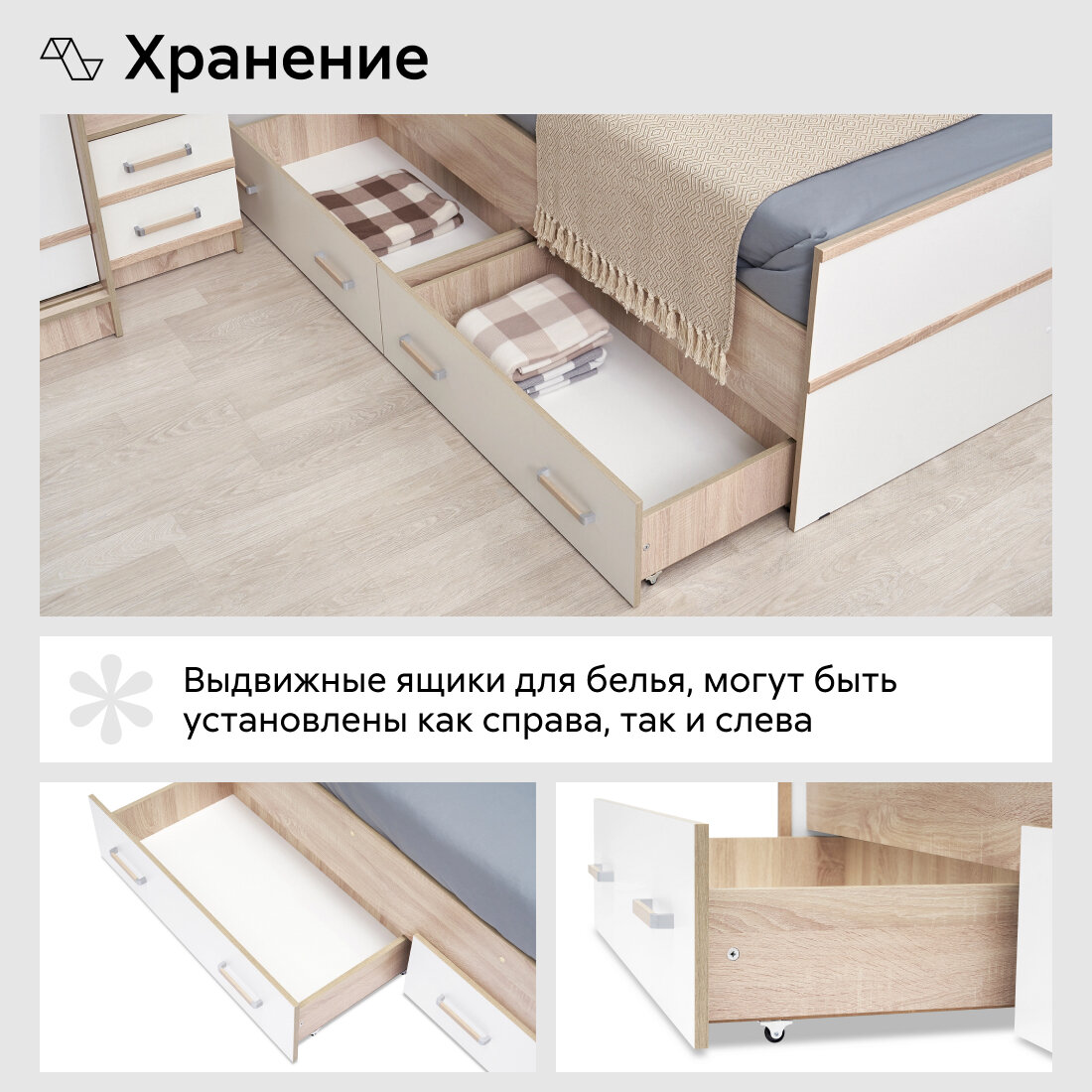 Кровать односпальная с ящиками Нонтон Сакура, рейка, 90*200 см, дуб сонома / белый